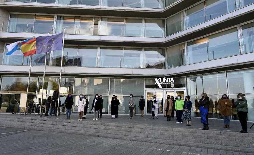 A delegada territorial da Xunta de Galicia en Vigo, Marta Fernández-Tapias, leu hoxe ás portas da sede autonómica na cidade a declaración institucional da Xunta de Galicia con motivo do 8-M, Día Internacional da Muller. O fixo arroupada por unha importante representación das mulleres que forman parte do cadro de persoal da Delegación e da inspectora xefa da UPA-Vigo, Sheila González, quen tivo a oportunidade de compartir a súa experiencia persoal e laboral.