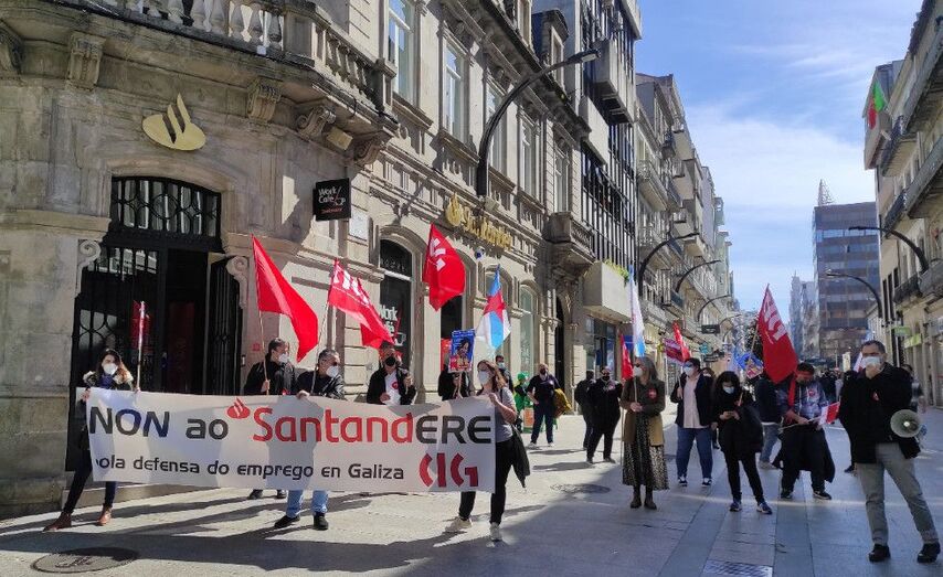 A federación de Banca da CIG desenvolveu hoxe unha mobilización contra o ERE do Banco Santander coincidindo coa inauguración en Vigo dun “work café” por parte da entidade financeira para denunciar que a dirección “abre chiringuitos” mentres manda persoal á rúa e obriga a clientela a facer cola. Neste senso, lembran que os plans do Santander contemplan o despido de 370 persoas e o peche de 79 oficinas no noso país.