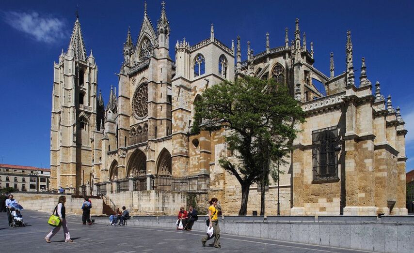 Pero si a León nos referimos, no podemos dejar de lado a la Pulchra Leonina, la magnífica catedral gótica de León. Un secreto a voces de este gran monumento es que se apoya sobre las ruinas de unas termas romanas y una catedral anterior. Las portadas de la Catedral están llenas de esculturas que representan escenas de la Biblia, el Cielo o el Infierno; pero lo más emocionante se encuentro en el interior: las enormes ventanas están cerradas con hermosas vidrieras que convierten los rayos del sol en un auténtico arcoíris.