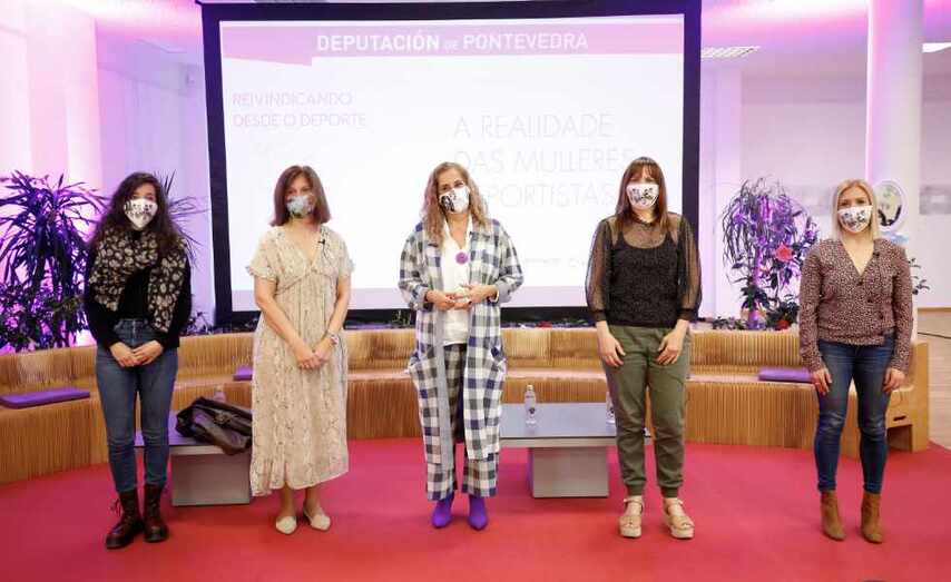 Irene Vilaboa, a primeira muller en adestrar un equipo masculino da categoría superior do balonmán español, fixo un chamamento a “loitar para ter as mesmas oportunidades”. A futbolista de primeira nacional Paula Dapena, destacou na mesma liña que “depende de nós cambiar as desigualdades. Hai que seguir avanzando para conseguir os dereitos que son nosos”. Tamén neste sentido se pronunciou Elena Casal, árbitra de fútbol de Primeira División Feminina e de Terceira Masculina, quen asegurou que “a loita non remata aquí, é diaria e estamos conseguindo moito”. Pola súa banda, Charo Castro, presidenta da Sociedade Ximnástica de Pontevedra, fixo fincapé no esforzo das mozas e no apoio “fundamental” de institucións como a Deputación. Agradeceu tamén o apoio Ainhoa Lameiro, do equipo nacional de slalom, e Judith Rodríguez, campioa de España de esgrima, quen animou ás mozas a perseguir os seus soños porque “con loita e sacrificio pódense conseguir as cousas”.
