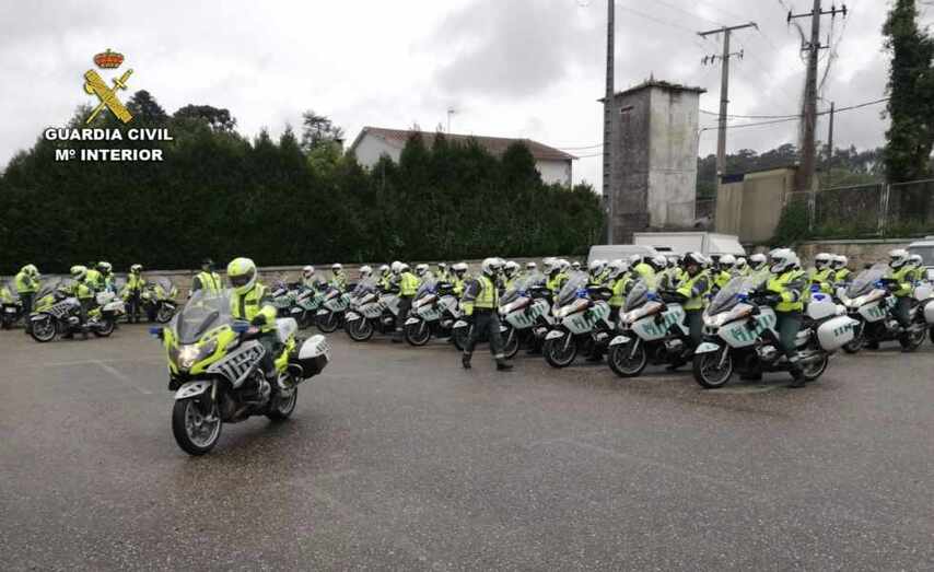El miércoles 21 de abril la provincia de Pontevedra se ha teñido con los colores característicos de los motoristas de la Agrupación de Tráfico de la Guardia Civil. En concreto, 77 motocicletas de dicho Cuerpo han recorrido los viales pontevedreses, acompañadas de diferentes vehículos de apoyo entre los que destacan un camión taller, un autobús o una ambulancia de soporte vital básico y un turismo.