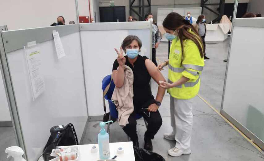 Hoxe que comezou a vacinación de persoas de entre 50 a 59 anos en todas as áreas sanitarias de Galicia, Eva Garcia, alcaldesa de O Porriño recibiu a primeira dose da vacina.