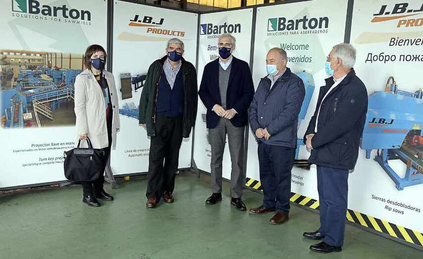 Durante a súa visita este mediodía a Barton Maquinaria, especializada no deseño e fabricación de equipos e maquinarias para a industria madereira, Conde loou o traballo desta empresa familiar de terceira xeración: “É un exemplo de como a tecnoloxía está cada vez máis presente na actividade produtiva da industria forestal galega”, apuntou en referencia á súa modernidade, innovación e internacionalización.