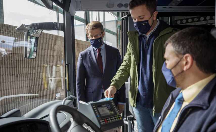 O presidente do Goberno galego, Alberto Núñez Feijóo, destacou que a extensión da tarxeta Xente Nova a toda Galicia permitirá, desde hoxe, 60 viaxes gratuítas ao mes aos menores de 21 anos, en calquera das máis de 3.100 liñas de autobús renovadas que xestiona a Xunta, completando deste xeito a aposta rotunda polo transporte público.