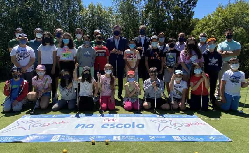O secretario xeral para o Deporte, José Ramón Lete Lasa, visitou esta semana o Aeroclub de Vigo onde uns 25 alumnos de 5º de primaria do CEIP Bouza Brey de Ponteareas (Pontevedra) participaron nunha actividade enmarcada dentro da unidade didáctica ‘O golf na escola’ do programa Xogade.