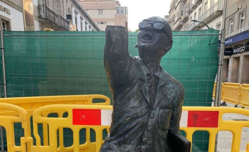 Hai un mes do acto vandálico que fracturou o brazo da estatua do histórico vendedor de xornais, suceso que o goberno de Vigo quere evitar que se repita reforzando a estrutura -cunha barra de aceiro desde o corpo ata o dedo- e con medidas adicionais. Abel Caballero lanzou este venres unha contundente mensaxe: “Que saiban os vándalos que imos ir a por eles”.