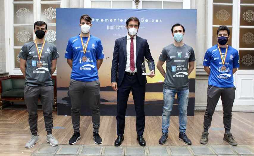 O equipo masculino de Tenis de Mesa Monte Porreiro presentou hoxe na Deputación o trofeo que o acredita como terceiro clasificado na Copa do Rei celebrada en Antequera o pasado 15 de xuño. O adestrador, Fernando Álvarez, e os xogadores Nacho Fernández, Nicolás Galbano e Martín Betancort, foron recibidos polo deputado provincial de Deportes, Gorka Gómez, quen lles amosou o apoio da institución, o orgullo de celebrar o resultado conseguido, ao tempo que desexoulles a mellor das sortes nas súas próximas competicións.