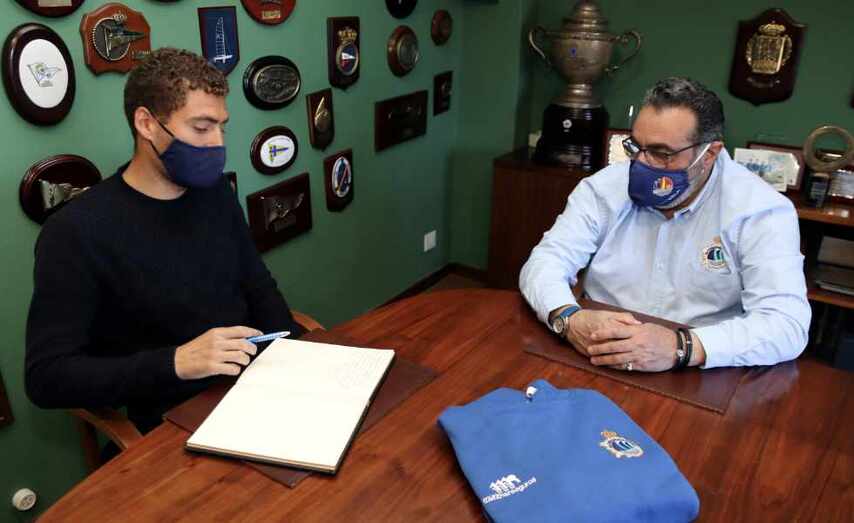 El presidente de la Real Federación Gallega de Vela, Manuel Villaverde, recibió el pasado mes de marzo al regatista vigués, quien firmó en el Libro de Honor de la RFGV y ya mostró su intención de volver de los Juegos de Tokio con medalla