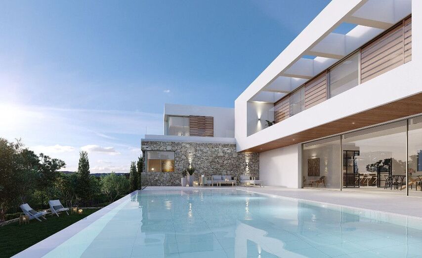 Las 22 villas de Can Aubarca, tienen una superficie construida de entre 454 y 662 metros cuadrados y están ubicadas a medio camino del Paseo Marítimo de Ibiza y de la maravillosa playa de Cala Llonga, así como a tan solo 10 minutos del aeropuerto. En un lugar privilegiado y con unas vistas impresionantes, cada una de estas viviendas está diseñada con una arquitectura única y exclusiva, respetando siempre su entorno natural. Los árboles y plantas de la zona quedan integrados en las propias villas a modo de jardines particulares.