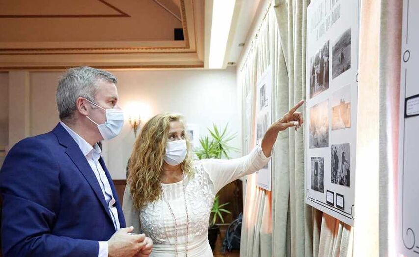 A presidenta da Deputación, da man do alcalde Luis Piña, percorreu a exposición que pode verse no Salón de Plenos ata o 14 de agosto