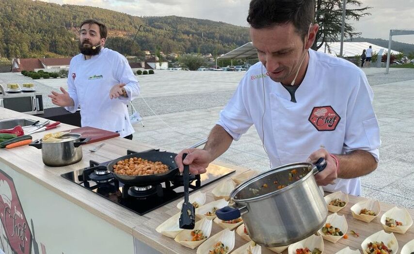 Os chefs Iván Méndez e Álex Iglesias deron nova vida aos produtos do territorio nunha actividade ao aire libre no Pazo de Mos