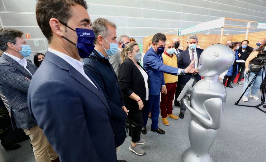 Dous robots recibiron á conselleira á entrada da instalación. Lorenzana salientou que Galicia está a liderar o cambio na formación para o emprego e conta xa co primeiro campus virtual de España para máis de 1.000 centros e 15.000 alumnos ao ano, que tamén se está a dar a coñecer na feira.