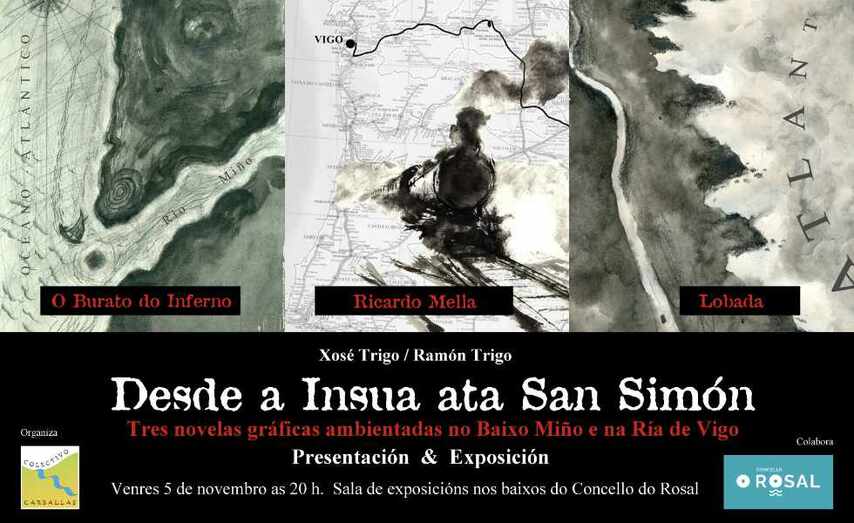 Os irmáns Xosé e Ramón Trigo presentarán mañá na sala de exposicións do Concello do Rosal tres novelas gráficas ambientadas no Baixo Miño e na ría de Vigo. O acto comezará ás 20.00 horas e esta organizado polo Colectivo Carballas co apoio do Concello. A alcaldesa, Ánxela Fernández, anima á veciñanza a asistir á presentación para desfrutar das grandes historias e ilustracións que se mostrarán nunha exposición que facilitarán os autores.