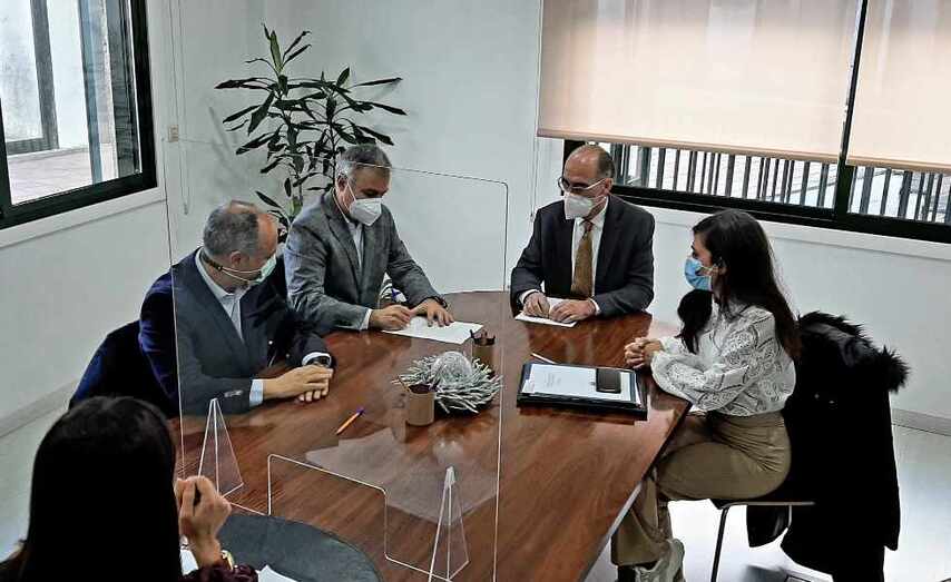O director xeral do Instituto Galego da Vivenda e Solo, Heriberto García Porto, asinou esta semana as escrituras de adxudicación -en réxime de dereito de superficie- da parcela asignada á empresa Arbinova na Plataforma loxísitica e industrial de Salvaterra-As Neves (Plisan). Na sinatura de escrituras tamén participaron representantes da Autoridade Portuaria de Vigo e da Zona Franca, promotores -xunto co IGVS- da Plisan.