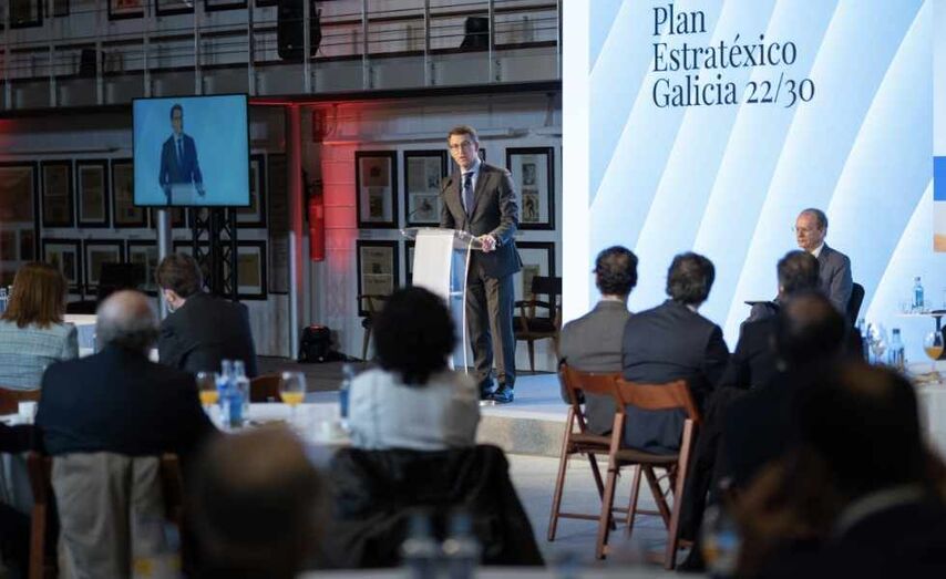 Durante a súa intervención nunha xornada sobre o Plan Estratéxico Galicia 2022-2030, Feijóo resaltou que, ante un clima xeneralizado marcado pola complexidade e as incertezas, a planificación é a mellor ferramenta das institucións e do tecido produtivo para definir o camiño no futuro. Ao respecto, lembrou que Galicia está ultimando o terceiro Plan Estratéxico, con dúas grandes prioridades: obter un crecemento medio sostido ao longo desta década de entre o 2 e o 2,5% do PIB; e reducir a taxa de paro catro puntos nunha década e que en 2030 baixe ata o entorno do 8%.
