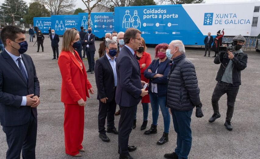 O presidente da Xunta, Alberto Núñez Feijóo, resaltou esta mañá a posta en marcha do autobús de Coidados porta a porta que percorrerá todos os concellos de Galicia -agás as sete cidades- para levar servizos especializados de audioloxía, podoloxía e estimulación da memoria á porta da casa de máis de 100.000 galegos.