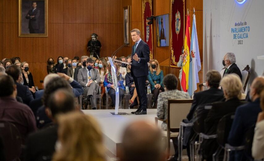 O presidente da Xunta aproveitou o acto de entrega das medallas do Parlamento para, facéndose eco da solidariedade da que fai gala o pobo galego e español, expresar que Galicia síntese a carón de Ucraína.
