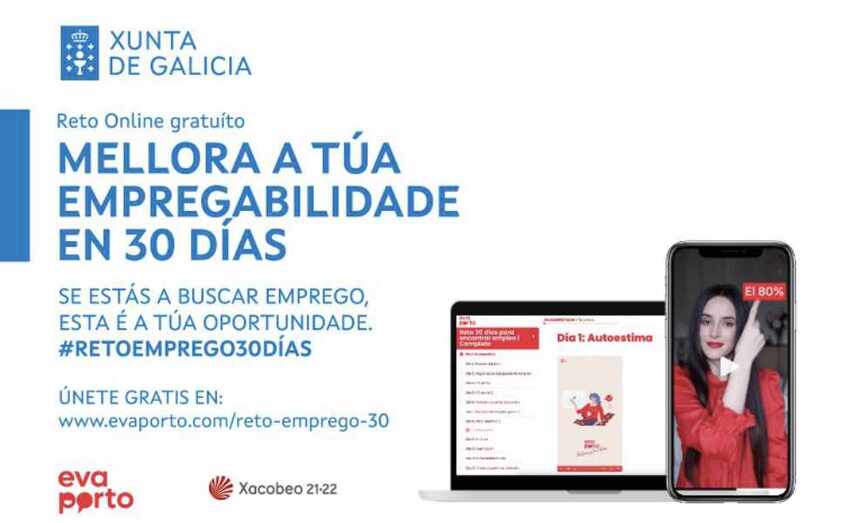 Máis de 11.000 persoas tomarán parte no #RETOEMPREGO30DÍAS promovido pola Xunta de Galicia en colaboración coa experta galega en Recursos Humanos e influencer Eva Porto, co obxectivo de contribuír á súa empregabilidade con desafíos diarios de 15 minutos durante un mes nos que se abordarán algunhas das estratexias máis axeitadas para ampliar as oportunidades laborais e enfrontar con éxito os procesos selectivos.