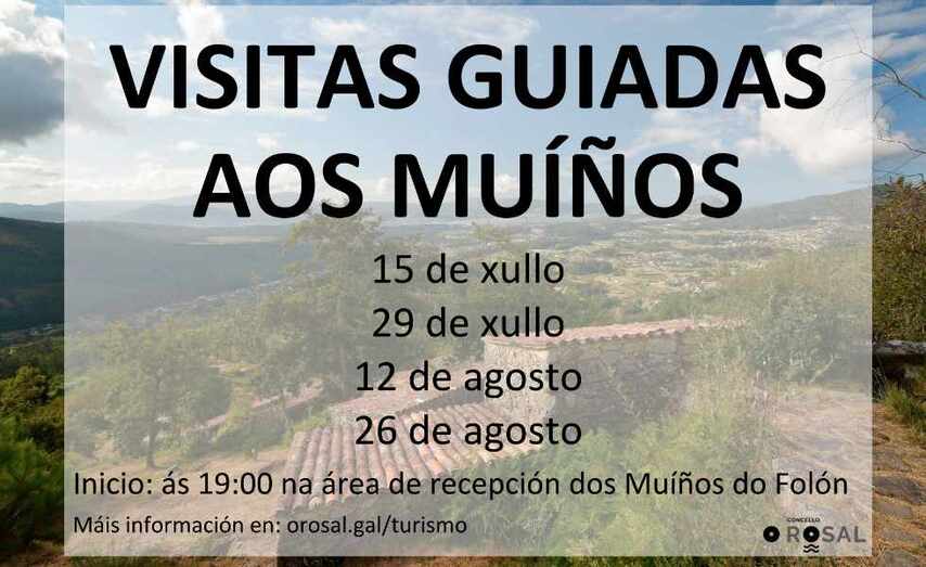 As visitas levaranse a cabo os venres 15 e 29 de xullo e 12 e 26 de agosto ás 19.00 horas e terán unha duración aproximada de dúas horas. O punto de encontro para o inicio das rutas será a área de recepción dos muíños do Folón.