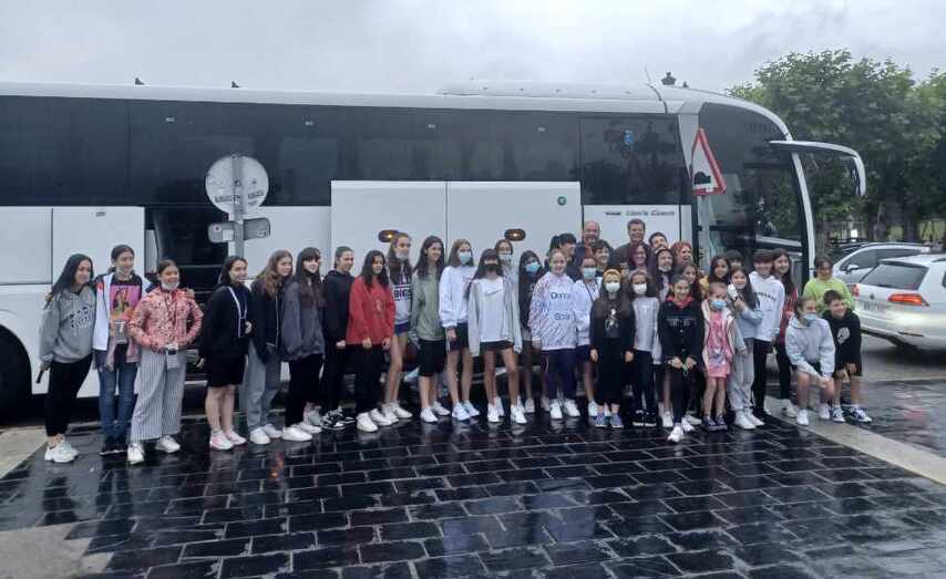 El Alcalde de Baiona, Carlos Gómez Prado, y la Concejala de Deportes, Miriam Costas Iriarte, acudieron esta mañana a despedir al equipo de competición de la Escuela “Galicia en Danza” de Baiona que participarán en la gran final mundial “Dance World Cup” en San Sebastián del 24 al 2 de julio.
