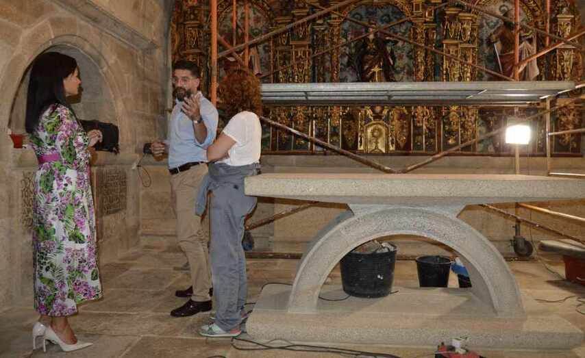 Os traballos de posta en valor das tumbas dos primeiros Marqueses de Mos, na Igrexa de Santa Baia (Santa Eulalia), atópanse na súa fase final, e ata alí desprazouse a comprobalo esta mañá a alcaldesa mosense, Nidia Arévalo, acompañada polo cura párroco, David López.