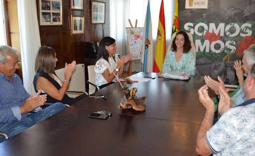 Na recepción a María del Carmen estiveron presentes, Nidia Arévalo, alcaldesa de Mos, Sara Cebreiro, concelleira mosense de Política Social e Igualdade, Participación Cidadá, Cultura e Turismo, os pais da homenaxeada (Carmen Serodio e Antonio Barros) e demais membros da Corporación Municipal.