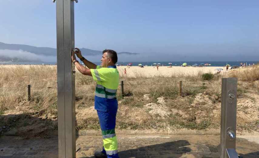 "Ante os datos preocupantes e a falta de previsión de choiva decidimos sumar xa esta outra medida de aforro e concienciación", explica o alcalde, Juan González. O Concello estima evitar a perda dun total de 25.433 litros ao día e 2.289 metros cúbicos en todo o que queda de periodo estival pechando as 26 duchas e 10 lavapés de todas as súas praias (Praia América-Lourido, Panxón, Patos, Cansadoura, Prado, Madorra, Area Fofa e Arribas Brancas). "Unha pegatina en cada unha advirte de que están clausuradas pola situación de seca, iso tamén axuda a que á xente tome conciencia da realidade e aplique medidas na súa propia casa", engade González.