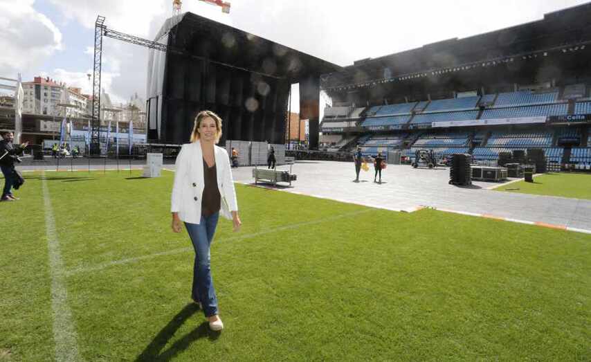 A delegada territorial da Xunta visitou este martes o estadio vigués para coñecer os detalles do espectáculo do vindeiro xoves
