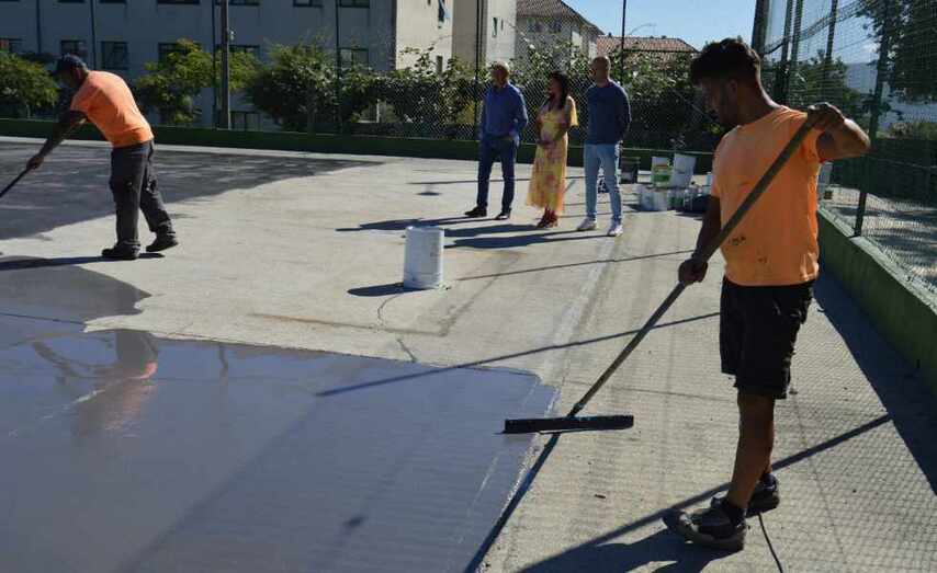 A obra estará rematada aproximadamente no prazo dunha semana. Consiste en traballos de mellora da pista polideportiva da Urbanización de San Eleuterio, na parroquia de Tameiga, coa finalidade de renovar os pavimentos, os elementos de peche e protección, así como os elementos vinculados ao desenvolvemento da actividade deportiva.
