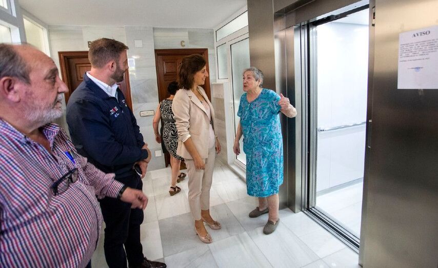 Durante unha visita ás obras realizadas en 2021 para instalar un ascensor e unha rampla de acceso nun inmoble de Santiago de Compostela, Ángeles Vázquez explicou que estas axudas van dirixidas a vivendas unifamiliares e edificios, onde poderán realizarse obras tanto nos espazos comúns do inmoble como nas vivendas que o compoñan.
