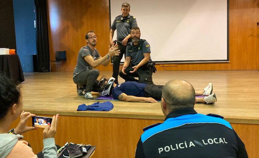 A Policía Local de Nigrán e traballadores do Concello de Nigrán recibiron a semana pasada formación en primeiros auxilios da man de tres gardas civís da Comandancia de Pontevedra instructores nesta materia e de David Mosquera, médico da UCI do Hospital Álvaro Cunqueiro. A trintena de asistentes actualizou de xeito teórico-práctico todas as técnicas de resucitación cardiopulmonar (RCP) e de desfibrilación externa automática, con especial atención á reanimación pediátrica ou á correcta extracción do casco aos motorista accidentados. O curso, cunha duración de 10 horas e con certificado a nivel europeo, tivo lugar este mércores e xoves no Auditorio Municipal de Nigrán previa solicitude do Concello á Guardia Civil (coa que colabora o Hospital Álvaro Cunqueiro).