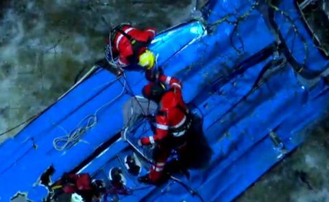 Imaxe TVGElévansen así a catro o número de falecidos no accidente e hai tres persoas desaparecidas, A Subdelegada do Goberno en Pontevedra informaba que no vehículo ían nove persoas. As dúas persoas rescatadas con vida foron o condutor, que deu negativo nas probas de alcol e drogas, e unha muller.