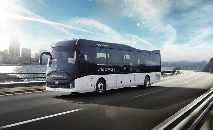 La nueva variante de lugar de trabajo móvil, el autocar de lujo Universe de Hyundai Motor para que los equipos sigan siendo productivos mientras se desplazan en ubicaciones remotas