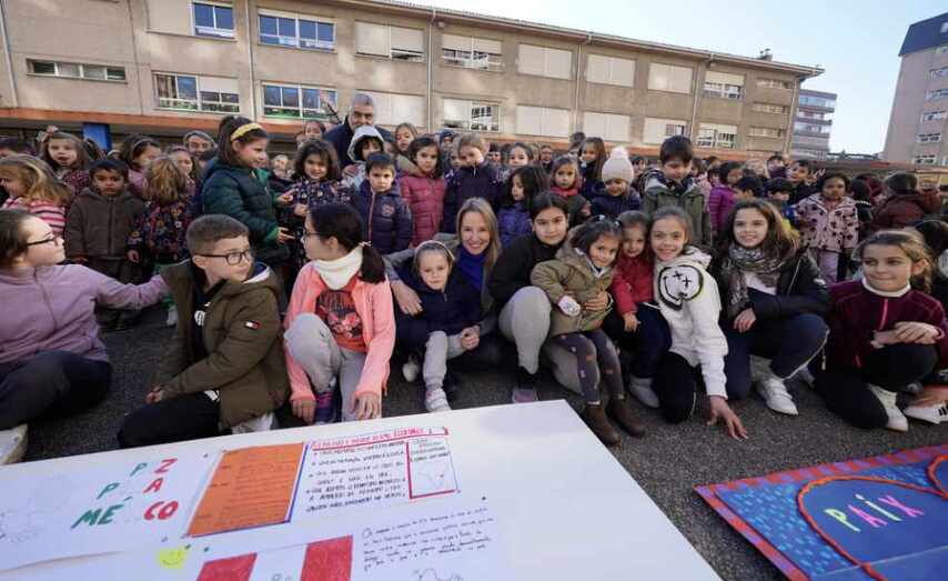 A delegada territorial da Xunta de Galicia en Vigo, Marta Fernández-Tapias, acudiu este luns ao CEIP Pintor Laxeiro para participar nos actos programados polo Día Escolar da Paz e da Non Violencia con preto de 500 alumnos e alumnas de Educación Infantil e Primaria.
