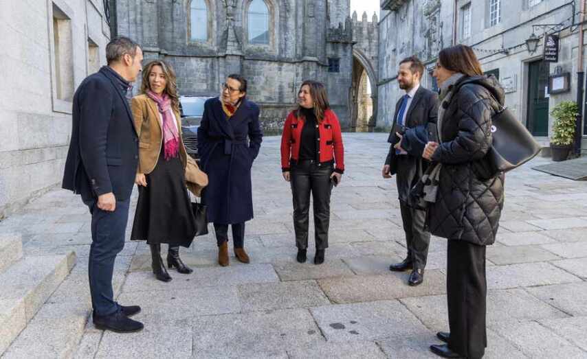 O alcalde, Enrique Cabaleiro, e a concelleira de Comercio e Mercado, Ana Núñez, recibiron hoxe en Tui á secretaria de Estado de Comercio, Xiana Méndez, acompañada da subdelegada do goberno, Maica Larriba. A responsable estatal puido coñecer in situ as actuacións proxectadas que recibiron unha alta valoración na convocatoria realizado polo seu departamento.