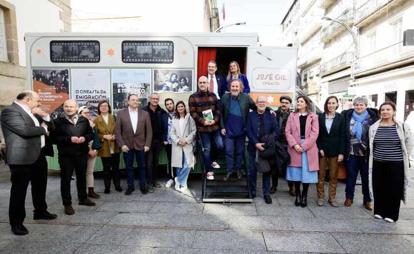 A rúa Príncipe, a poucos metros de distancia de onde José Gil montou no ano 1910 a primeira produtora de cinema da historia de Galicia, converteuse hoxe un século despois no escenario da presentación do proxecto multidisciplinar co que a Deputación, en colaboración con Vía Láctea Films, Cine na Rúa e Editorial Galaxia busca ao longo deste 2023 recoñecer e reivindicar a este visionario e pioneiro, que cimentou as bases do audiovisual galego. Do mesmo xeito que Gil levaba o cine a todos os recunchos de Galicia, un Cinemóbil, esta semana aparcado ás portas do Museo MARCO, será a peza central coa que este proxecto chegará a 30 concellos cos que este cineasta tivo relación durante a súa vida, e cuxos actuais alcaldes e alcaldesas tamén estiveron hoxe na presentación, amais da presidenta provincial, Carmela Silva, o alcalde de Vigo, Abel Caballero e representantes das citadas entidades, Ignacio Vilar, Carlos Méndez, Lucía Concepción, Manuel González e Francisco Castro.