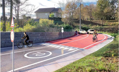 En resumo, a actuación consiste principalmente en reordenar a infraestrutura viaria entre a Avenida de Sanguiñeda e o paso inferior da Autovía A-55, nun tramo de 635 m, cunha nova senda peonil de 2.80 m (marxe esquerdo) e 2.00 m (marxe dereito), bandas de baldosas de pedra en zona de beirarrúas, aparcadoiros e vados para a entrada de vehículos, plataforma elevada para tráfico mixto (vehículos e peóns), pavimento para preseñalizar cruce de calzada, rede de pluviais, renovación da rede de alumeado público, execución de mobiliario urbano, xardinería e rego. E por último sinalización.