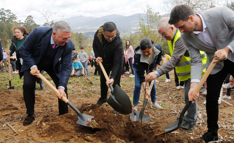 Hoxe plantáronse 100 árbores en Pereiras, nun acto simbólico no que participaron preto de 300 alumnos de Mos, o conselleiro de Medio Rural, José González, a alcaldesa de Mos, Nidia Arévalo, os presidentes das comunidades de montes, o vicepresidente do RC Celta, Ricardo Barros e o porteiro do club, Iván Villar