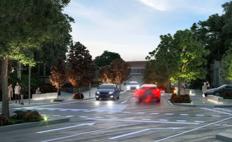 O proxecto prevé a substitución da pavimentación da totalidade da superficie do ámbito mediante unha zona central de rodadura de dobre sentido de circulación de 7,50 m de ancho de aglomerado asfáltico e beirarrúas peonís elevadas de formigón puído con xunta aberta vexetal situadas en ambas as marxes do vial. A beirarrúa situada ao norte do ámbito, por tanto orientada ao sur, expúxose con maior ancho co fin de xerar zonas de estancia con bancos de formigón prefabricado con iluminación led integrada nos mesmos, un carril bici integrado na propia beirarrúa como solución máis segura para os ciclistas, achegando a posibilidade de que o peón se apropie da súa superficie, así como xardíns con céspede e flores con arboledo de gran porte e especies arbustivas que funcionarán como filtro vexetal con respecto á zona de rodadura, con alto nivel de tráfico neste tramo da Avenida de Puxeiros. A beirarrúa situada no marxe sur, que se lle dará continuidade na Avenida do Rebullón, exponse cun ancho de non menos de 4,00 metros do mesmo material, formigón puído con xunta aberta vexetal, con alcorques circulares integrados na mesma para plantación de arces vermellos iluminados con uplights encaixados no pavimento. Nesta beirarrúa prodúcense ensanches xerados pola aliñación do plan, aproveitando esta circunstancia para xerar zonas de estancia con bancos de formigón prefabricado con iluminación led integrada nos mesmos. No ensanche que se produce na baixada pola Rúa Paredes proxectouse un illote como zona de estancia con xardíns con céspede e flores amplos para plantación de arboledo e vexetación xerando zonas de sombra sobre os bancos que se prevé instalar. No último tramo da Avenida de Puxeiros, contigua á rotonda dos bois, o ancho do vial permite desdobrar os carrís de tráfico rodado, expondo deste xeito 4 carrís, dous por sentido de circulación, co fin de dotar de maior fluidez ao tráfico da rotonda. O ancho deste tramo mesmo permitiu expor unha mediana con arboledo e especies arbustivas. O proxecto contempla renovar a totalidade das instalacións urbanas como do saneamento, de pluviais, abastecemento e rega, así como a renovación da totalidade da iluminación do ámbito mediante luminarias led de baixo consumo.