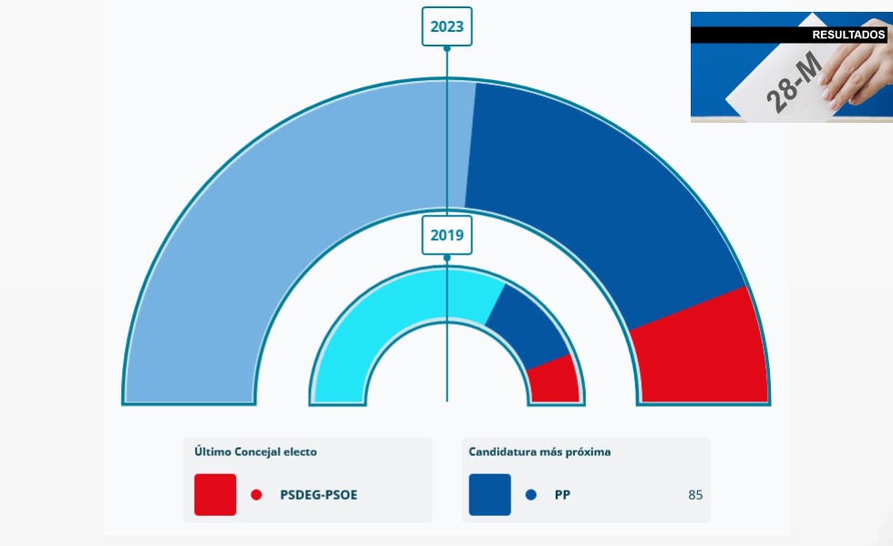 Con el 100% de los votos escrutados este es el resultado provisional de las elecciones locales celebradas este domingo 28 de mayo de 2023 en el Concello de TOMIÑO.