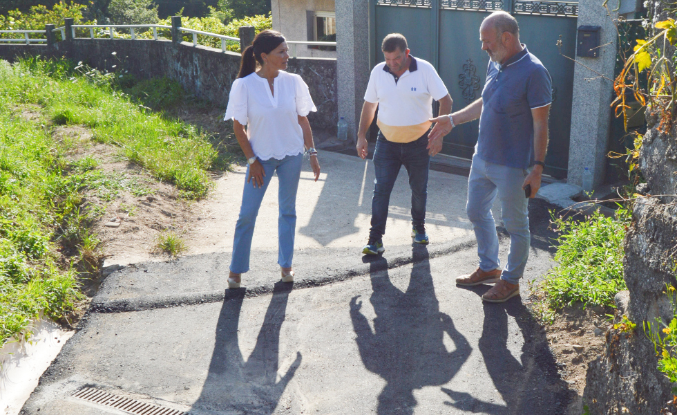 A alcaldesa de Mos, Nidia Arévalo, o tenente alcalde e concelleiro de Obra Pública, Camilo Grandal, e o edil de servizos e concelleiro da parroquia de Louredo, Baldomero Lorenzo, veñen de visitar as obras de saneamento en Louredo desde o Camiño da Coutada ata a Estrada Nacional 550, que se atopa prácticamente rematado.