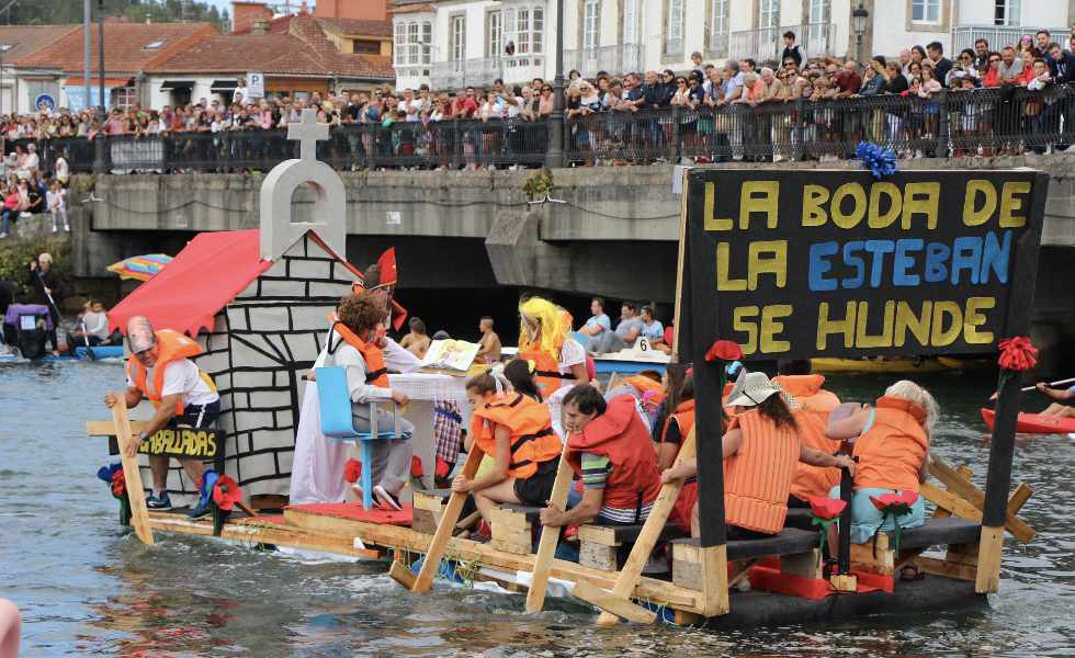 O evento, que cada ano reúne a centos de persoas na contorna da ponte romana, apunta á diversión absoluta ao tenor dos nomes dos artefactos flotantes inscritos: 'Juan Sebastián de Elpalo', 'As Chuzas', 'Escenas de matrimonio', '¡Mandacaballo!', 'Gondoleros en apuros', 'Can de Palleiro', 'Petrogran', 'A bicichoca', 'Equipo Firulais' e 'Villa Cousa'
