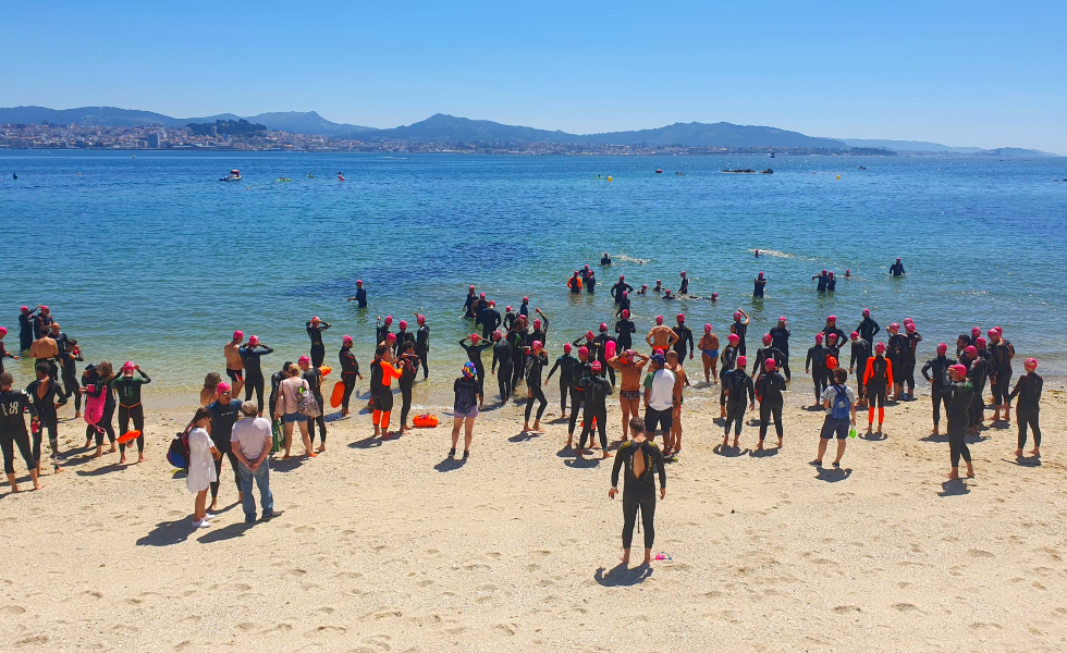 La travesía salió redonda, sin los problemas meteorológicos de algunos domingos de ediciones pasadas. Tiempo perfecto, temperatura del agua a 17 grados -mejor en Moaña que en Vigo, según explicaba algún nadador al finalizar la travesía- y un elevado nivel de participantes.
