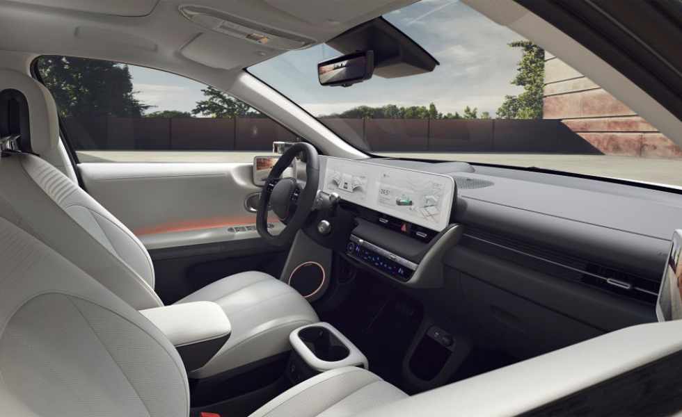 Hyundai Motor sigue mejorando la seguridad de su multipremiado IONIQ 5 con la introducción de un nuevo retrovisor central digital (DCM). Funcionando conjuntamente con una cámara montada en el alerón trasero del coche, el DCM aumenta significativamente la visibilidad proporcionando una visión panorámica y sin obstáculos de la parte trasera del coche. El DCM ofrece un ángulo horizontal de visión trasera de aproximadamente 20° cuando está en modo óptico estándar. Sin embargo, cuando se activa el "modo digital" con la simple pulsación de una palanca situada en la base del retrovisor, el ángulo horizontal de visión trasera aumenta hasta aproximadamente 50°, ofreciendo a los conductores un campo de visión mucho más amplio. El "modo digital" utiliza la cámara para proyectar una visualización en tiempo real en el retrovisor, optimizando la visión trasera del conductor en todas las condiciones, junto con la función de oscurecimiento automático.