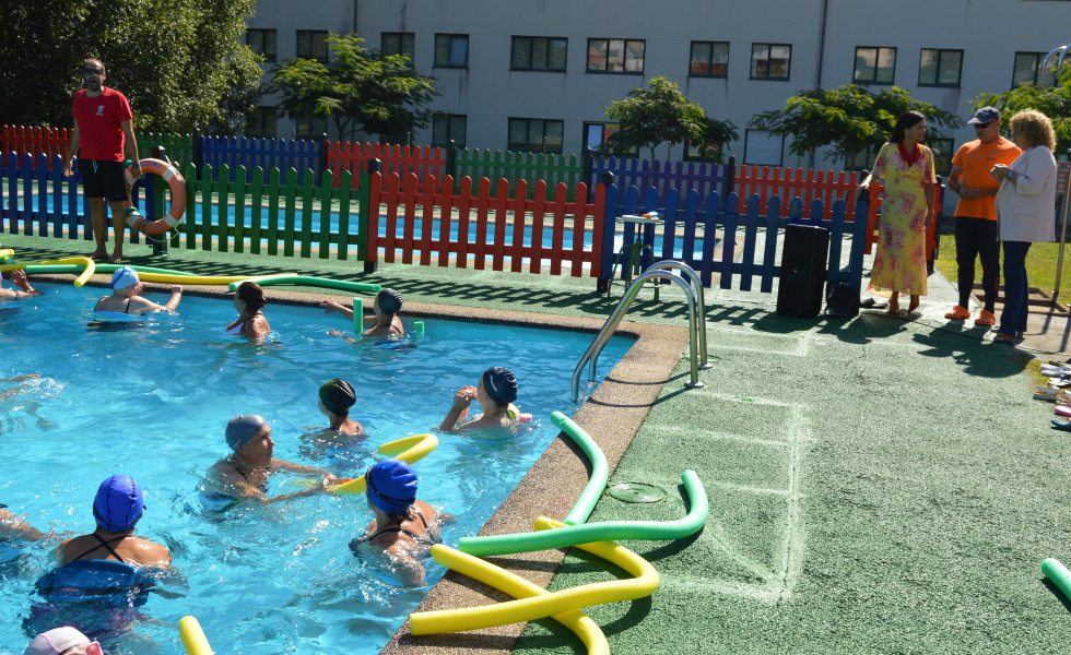 Las instalaciones al aire libre de San Eleuterio, además de estar disponibles para el uso libre de la piscina, también se habilitan para realizar ejercicio monitorizado. Así, se organizan estas clases de Aquagym gratuitas en grupo. Las clases han logrado cubrir todas las plazas ofertadas, un total de 60, divididas en dos grupos: uno de 30 personas con sesiones los martes y jueves y otro, con las otras 30, los miércoles y viernes.