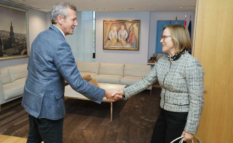 El presidente de la Xunta, Alfonso Rueda, acompañado por el conselleiro de Presidencia, Xustiza e Deportes, Diego Calvo, se reunió esta mañana con la embajadora de Finlandia en España, Sari Rautio.