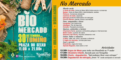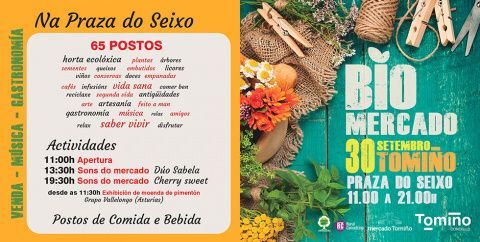 A praza do Seixo de Tomiño acollerá o domingo 30 de setembro, a cuarta edición do BioMercado, con 65 postos, dos que moitos estarán dedicados á alimentación saudable, produtos ecolóxicos e naturais. Ademais, a feira contará con diferentes actividades como charlas, obradoiros e conferencias.