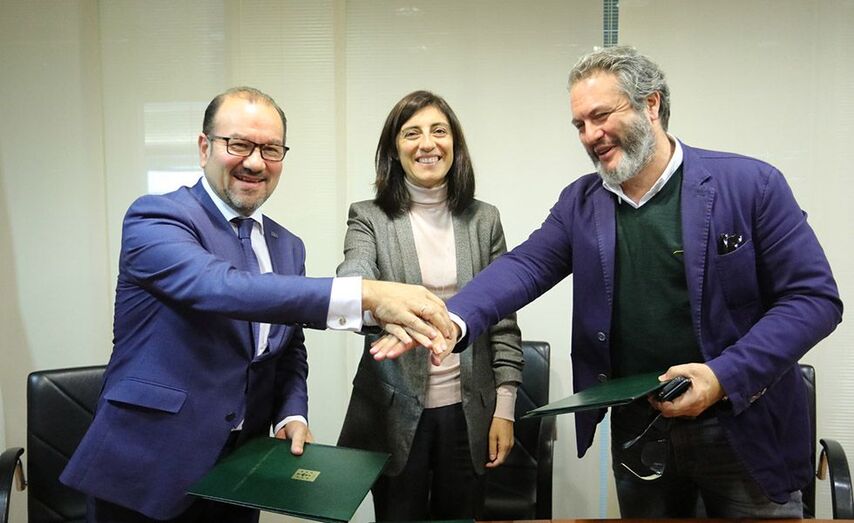 A conselleira de Medio Ambiente, Territorio e Vivenda, Ángeles Vázquez, o decano do Colexio Oficial de Arquitectos de Galicia, Antonio Maroño, e o reitor da Universidade de Santiago de Compostela, Antonio López Díaz, asinaron esta semana o convenio de colaboración -por un importe de máis de 60.0000 euros- para impulsar un grupo de traballo, coordinado polo Instituto Galego de Vivenda e Solo (IGVS), para elaborar un documento modelo de Plan de dinamización das áreas de rexeneración urbana de interese autonómico (Rexurbe) que desenvolva e concrete os contidos mínimos esixidos para rehabilitar este tipo de espazos, zonas degradadas desde un punto de vista arquitectónico e social.