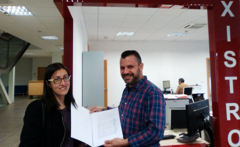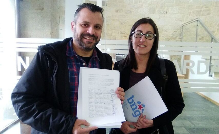 O portavoz municipal do BNG da Guarda, Anxo Baz e a Responsábel local da organización, Bea Lomba, entregaron hoxe no rexistro do Concello un milleiro de asinaturas reclamando a paralización da compra da finca de Fínola.