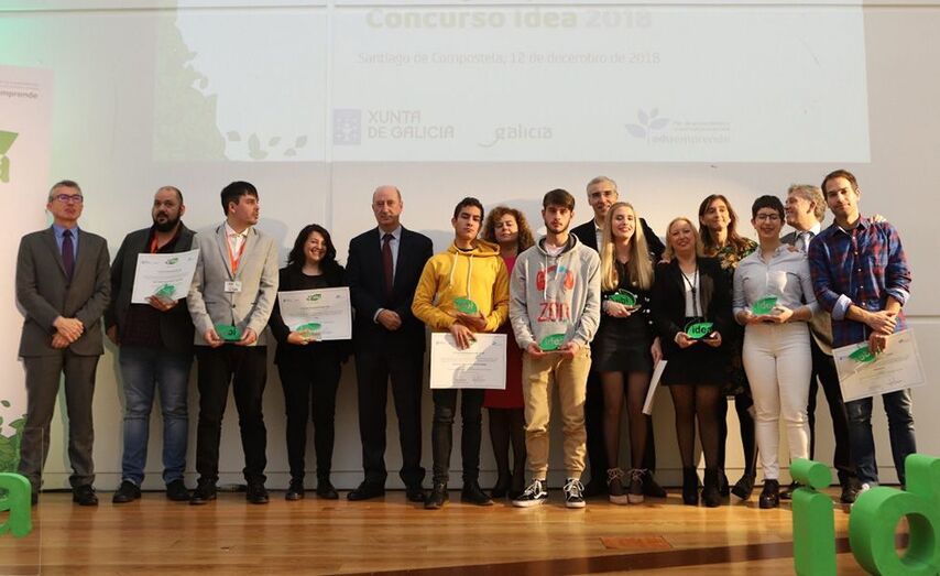 Un total de 15 alumnos e alumnas recolleron hoxe o Premio Eduemprende Idea 2018 dos centros integrados de FP As Mercedes de Lugo e de FP Someso da Coruña; e dos IES de Valga, Montecelo (Pontevedra) e Rodeira (Pontevedra). Os proxectos galardoados foron: Radis Radón Innova Solución sobre a medición do radón; Suevia, un negocio de conservación, mantemento e restauración de estruturas metálicas; Processvet, un laboratorio de anatomía patolóxica veterinaria; Minerva, unha aplicación móbil e unha web onde deseñar camisetas personalizadas; Aura, unha cooperativa dedicada á estética e á imaxe de persoas con necesidades específicas; e Quantum Cines, unha cooperativa para instalar unha sala de cine e exhibición de eventos en Cangas.